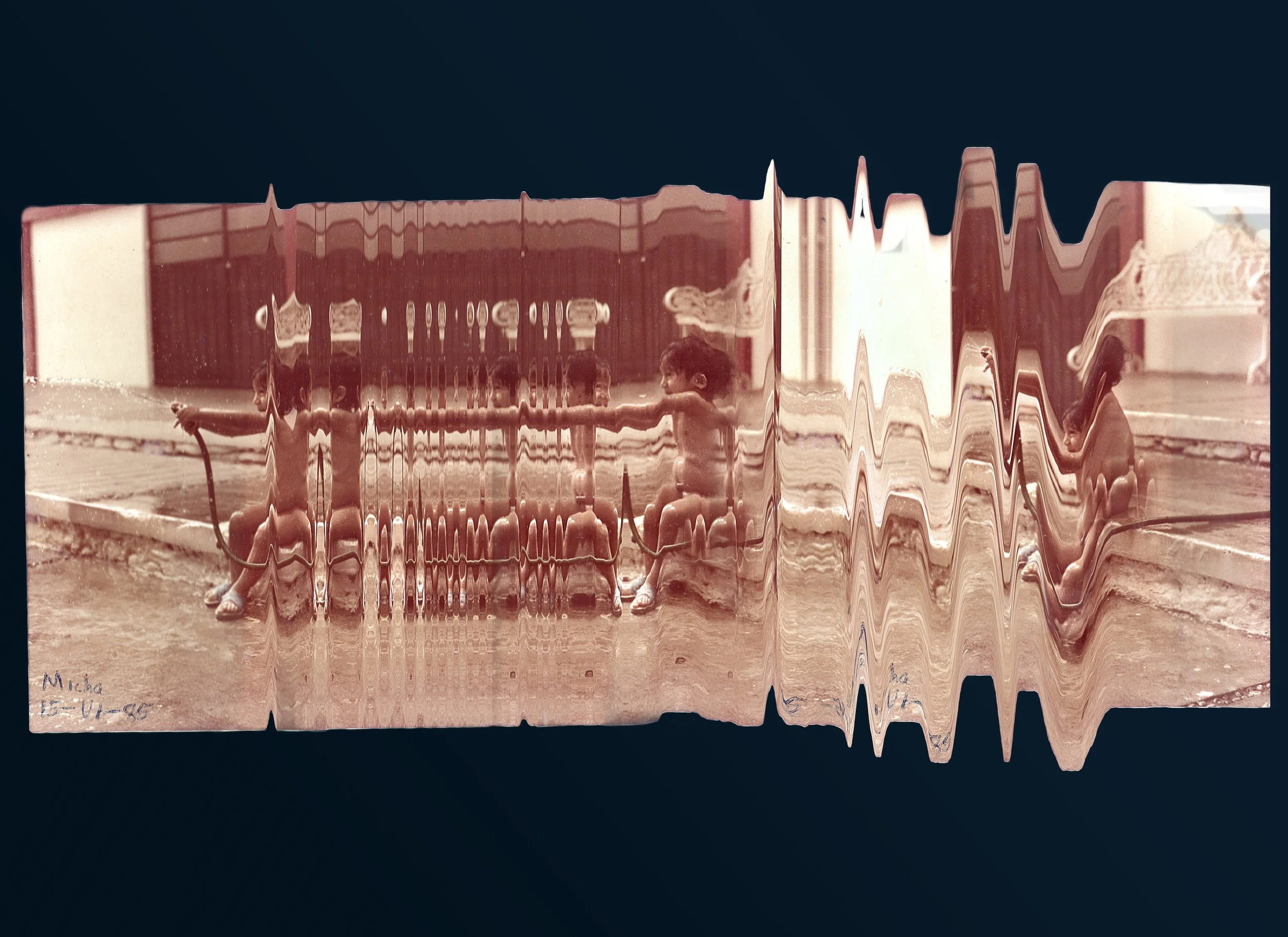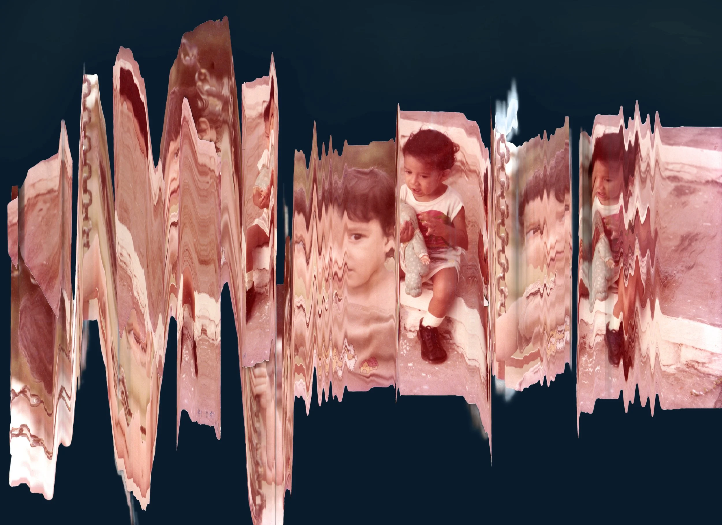 En la narrativa de Esquirlas, este núcleo corresponde a la infancia. Aquí el artista presenta imágenes de su propio álbum familiar, pero presentadas simulando el proceso de inasibilidad desde la memoria: al digitalizarlas con un escáner, se hicieron movimientos intencionados para obtener estas imágenes indescifrables. Las escanografías resultantes presentan una intervención de glitch y esta imposibilidad de obtener imágenes claras se relaciona con la propia memoria y cómo los recuerdos de la infancia llegan incompletos o confusos. Además, se enfrenta con la propia experiencia del artista de exponerse a sí mismo: aunque son imágenes personales e íntimas, pero a través de esta imposibilidad de leerlas por completo, se añade contradicción y tensión entre lo privado y lo público.